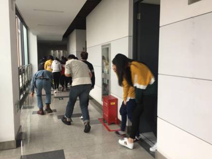 首先许传宏老师给大家讲解了校园安全问题和安全工作的重要性,接着,学院实验室主任朱翔老师宣传了有关实验教学场所的安全管理制度和安全操作规程,以及消防安全方面的知识、逃生技巧以及各种逃生指令。讲解过程中,大家一边观摩一边学习,身临其境地上了一堂生动的消防知识课。理论讲解后,学生在老师们的指导下实地演练了火灾现场的紧急疏散场面,改变了以往“纸上谈兵”学习消防知识的旧方式,亲身感受了遭遇真实火灾时的那种危险性和紧迫性。