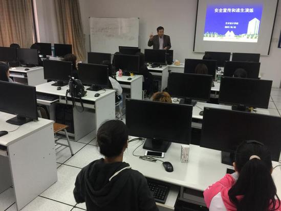 图1艺术设计学院党总支书记许传宏进行安全教学并宣布演练开始