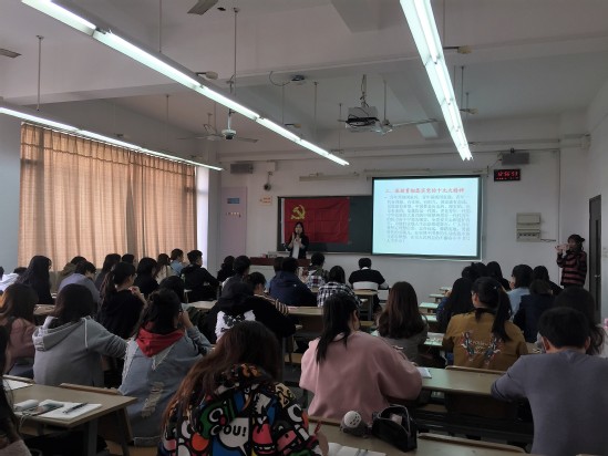 10月20日中午,艺术设计学院党校在教学楼C202多媒体教室举行了以“夺取新时代中国特色社会主义伟大胜利的政治宣言和行动纲领”为主题对党的十九大专题精神进行解读,邀请松江区委党校满媛媛老师为师生党员授课。本次大会由组织员杨爽主持。