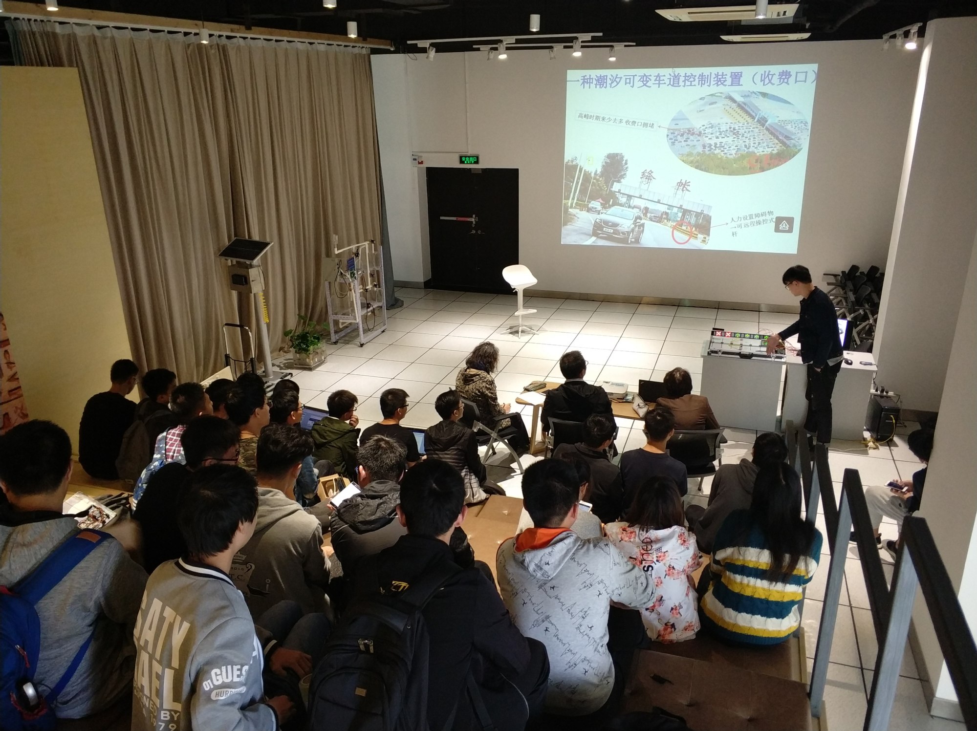 校内评审采用现场作品展示与答辩相结合的形式进行,同学们都做了精心准备,将作品带至现场,配合PPT向评审老师们充分展示着自己的作品与创新思路,将创新精神、创造活力发挥到淋漓尽致。在作品展示过程中,参赛同学都沉着冷静的表达着自己的想法,课题创新点、技术指标等。评审专家老师们针对参赛组的每一个参赛作品给与了认真指导,提出了相关修改意见。