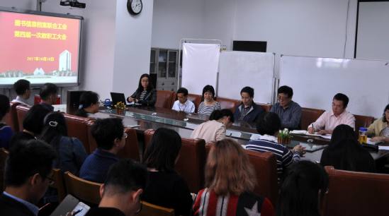 图书信息档案联合党总支书记李军宣读了《第四届一次教职工大会决议》。她代表党总支对第三届工会委员的工作表示肯定和感谢,她指出第三届工会委员会能够带领全体会员,在民主管理、维权保障、和谐创建、文体活动等各项工作中能够立足本职工作岗位,创先争优,团结协作,圆满地完成各项工作任务,并取得了较好的成绩。同时,她对新当选的第一届工会委员表示祝贺,希望图书信息档案联合工会全体会员在部门党政的领导下,在新一届工会委员会的带领下,进一步开拓进取、凝聚力量,为学校及部门的各项工作继续努力奋斗。