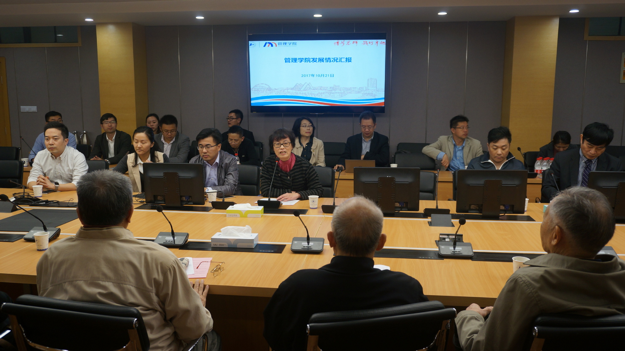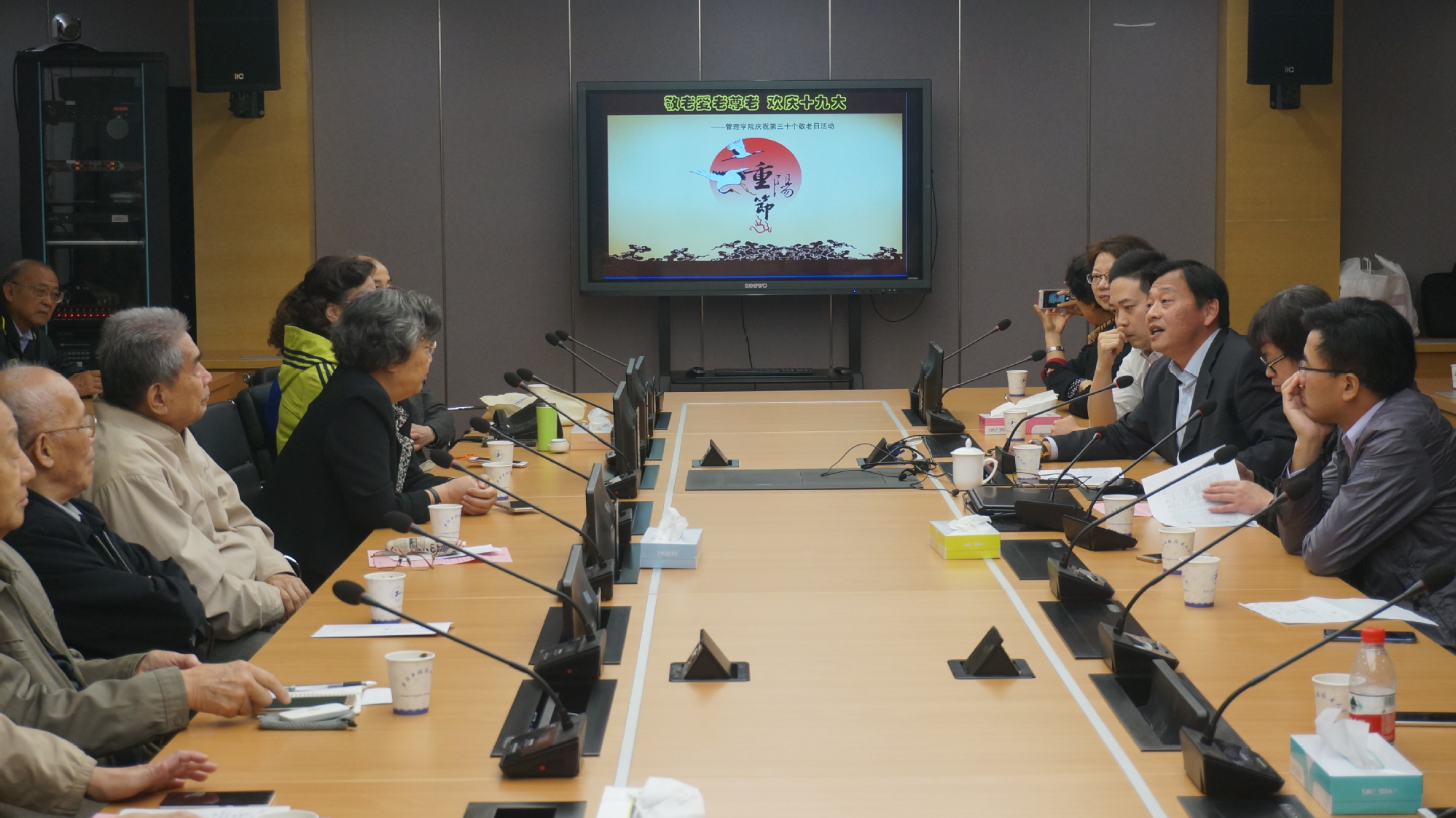 10月21日,在第30个重阳佳节来临之际,管理学院在仙霞路校区725会议室举行了欢度“重阳节”茶话会,学院20多位离退休老同志前来参加。校党委副书记、副校长,管理学院院长史健勇教授,党委书记周洁老师携管理学院班子成员与大家欢聚一堂,表达了对老同志的敬意和节日的慰问。茶话会由管理学院党委书记周洁老师主持。
