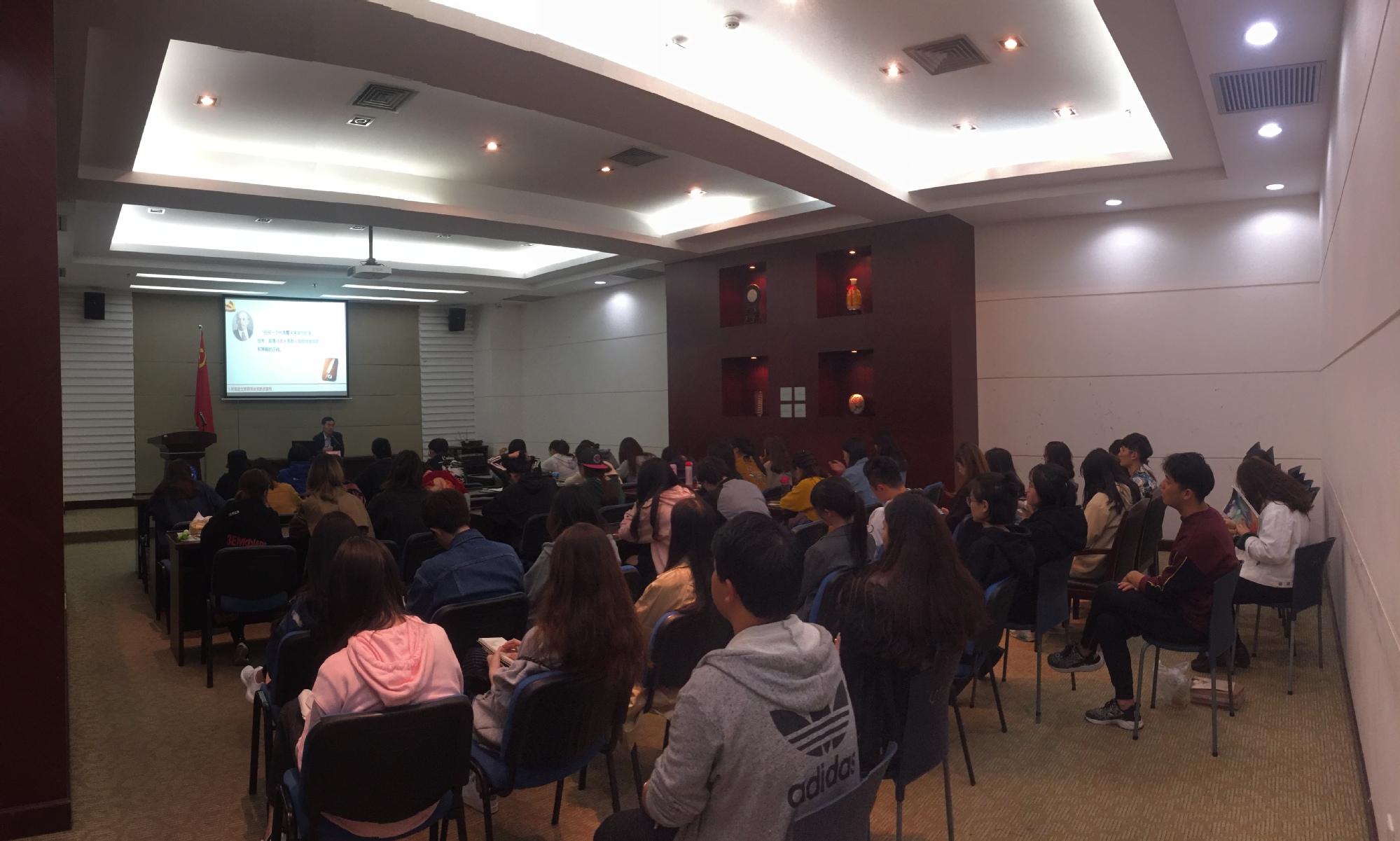 同学们听课热情很高,每位同学认真做笔记,一致认为应当做到有理想、有本领、有担当,以实际行动积极向党组织靠拢。