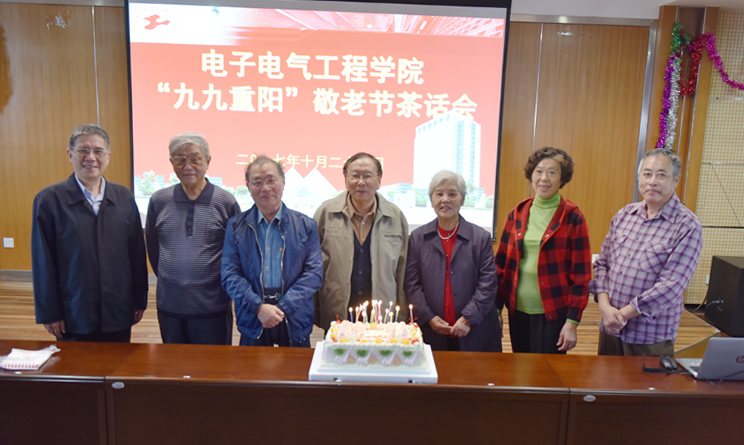 在党的19大胜利召开以及第30个敬老节暨九九重阳节到来之际,电子电气工程学院工会在学院党政领导的支持下,10月25日下午,学院退休教师在长宁校区综合楼5楼多功能厅欢聚一堂,举行茶话会共同庆祝敬老节,传递学校领导对退休教师的关心慰问。老教师们早早来到会场,大家热情地握手问候,围坐在一起倾诉着相思之情,现场充满着温馨的氛围。学院党委书记陆展华、院长方志军、副书记秦颖、副院长刘瑾、院工会主席施一萍,院办主任吴丽萍以及部分系主任、支部书记、院工会小组长们也参加了茶话会。会议由陆展华书记主持。