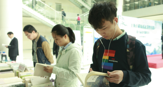 二楼大厅中,各项活动亦在举行:中文图书(含十九大、海派文化、智慧女性、新媒体专题图书)现场荐购活动、超星发现系统推广活动、优秀中外文期刊推荐活动……师生们或驻足观摩,或低头阅读,现场人气旺盛而秩序井然。