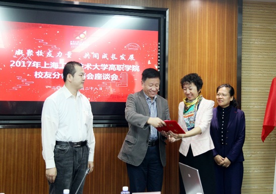 本次校友理事会审议通过了增补和调整学院理事会成员建议名单,并为增补与调整的理事颁发了聘书,并进行了上海工程技术大学高职学院校友分会工作站揭牌仪式。