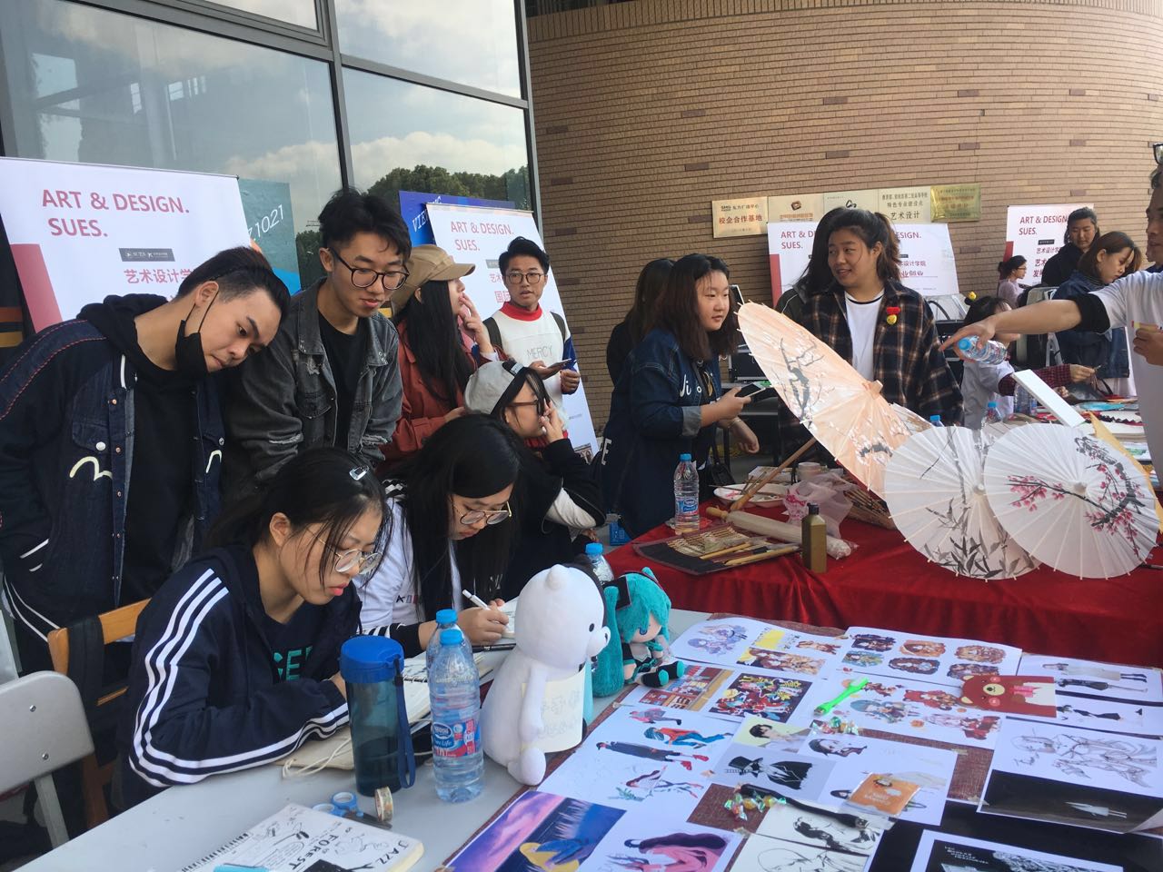 青春,在岁月的长河流动,在成长的年轮流转,滑出流星般的舞步,闪耀智慧与梦想的光芒。那是我们的青春,独一无二。在艺术楼广场上“民俗传统手工艺展示”社团巡礼活动上,同学们为校友准备了陶艺、扎染、刺绣等一系列传统文化活动。同时,在广场上开展了现场速写活动,为学院的校友们画上了一幅幅有着纪念意义的速写和漫画。