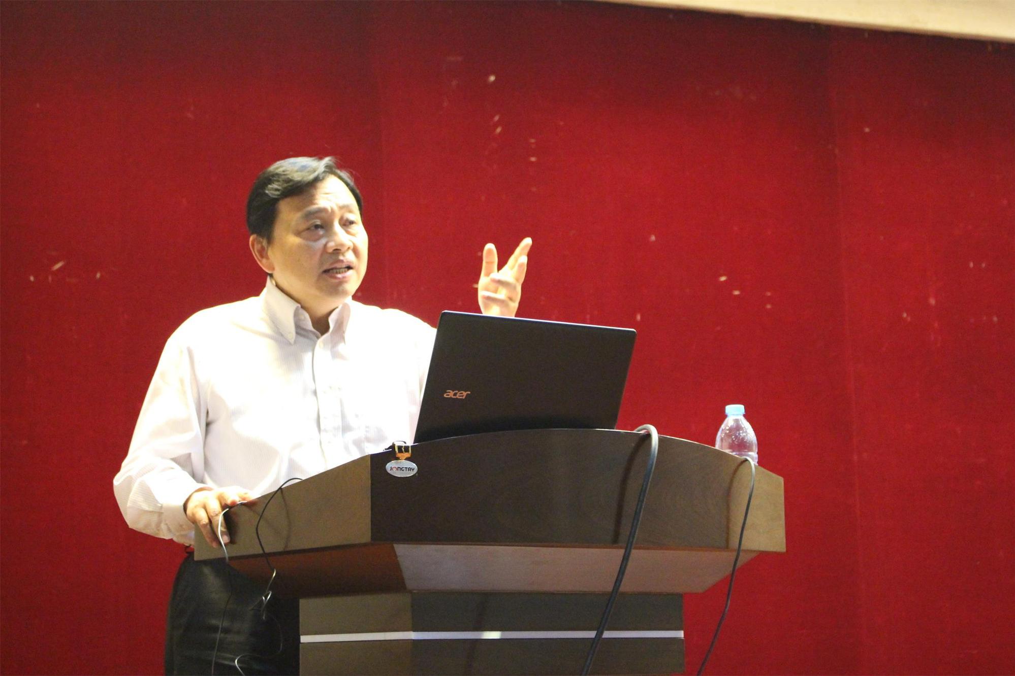史健勇教授以“我与工程大共成长”为主题开始了分享。首先,他立足于自身的成长体会,谦虚的用两个“单”——“经历单一又丰富,身份简单又多元”来概况总结成长经历,但我们所看到的却是丰富又多彩的成长经历。他说自己所取得的成就都离不开母校四年规范、严谨的本科训练与工作后的磨练;他的成长轨迹无不体现着工程大办学理念的精神烙印!通过一张松江校区平面图,史教授向学生生动的介绍了我校育人环境与办学理念的完美融合,从每一栋建筑独特的内涵角度,展示出我校园林化、信息化、人文化的校园文化;从我校布局看,“前有照,后有靠”是一个适合居住、读书、休息的人杰地灵之地,他希望同学们能够像我们校园格局一样成为展翅的雄鹰,盼望同学们通过“勤奋、求是、创新、奉献”的校训找准自身定位,珍惜大好学习时光。史健勇教授结合他的学习体会角度,向青年学生分享为什么要好好学习以及怎样才能好好学习。他认为学习的目的既可以是为父母、为自己,也应结合为集体、为国家,但归根到底青年学生要立足自身学到谋生本领。他强调青年学生政治错误不能犯、经济问题不能错、生活问题不能有,要做有文化的青年,文化是根植于内心的修养、无需提醒的自觉、以约束为前途的自由、为别人着想的善良!