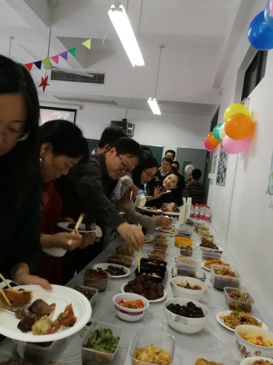 10月27日,化学化工学院教工小家举办了一年一度的教职工集体冷餐会,院党总支书记刘宇虹同志,院长饶品华同志以及超过50名教职工参加了本次活动。刘宇虹书记为本次活动致辞,她指出,在不忘初心和努力工作的同时,要保持均衡劳逸,希望大家工作和生活两不误。冷餐会上,教师们一起包饺子,烤烧烤,品尝各自准备的美食盛宴,活动现场一片欢声笑语,其乐融融。集体冷餐会是化学化工学院的传统集体活动,旨在增进同事间的情谊,增强学院凝聚力。