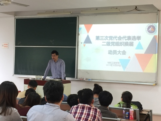 10月27日,材料工程学院党委在F106阶梯教室召开动员会,部署学校第三次党代会代表选举和二级党组织换届工作。学院党委书记于治水、副书记梅元媛出席了会议,学院全体教工党员和学生党员参加了会议。