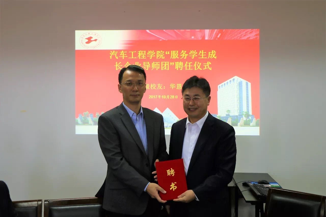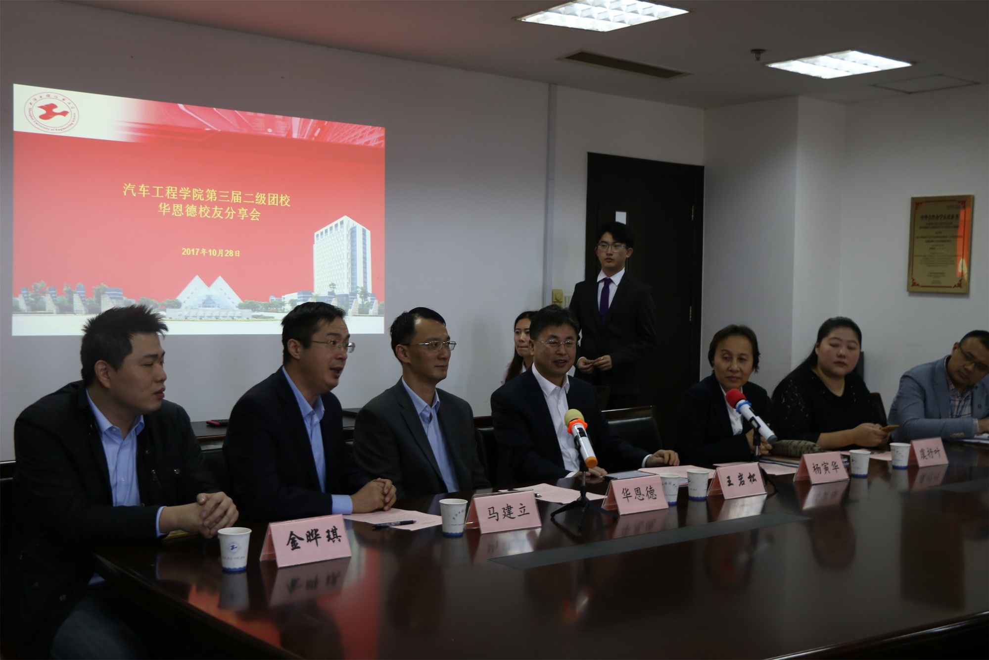 10月28日上午,汽车工程学院“服务学生成长导师团”聘任仪式暨第三届二级团校第二课在行政楼1012室举行。本次团课特邀汽车工程学院1998级校友、上海大众动力总成有限公司党委副书记、纪委书记、工会主席华恩德与全体二级团校学员交流分享。副校长、汽车工程学院院长王岩松,党委书记杨寅华,党委副书记马建立等出席本次活动。本次会议由党委副书记马建立主持。