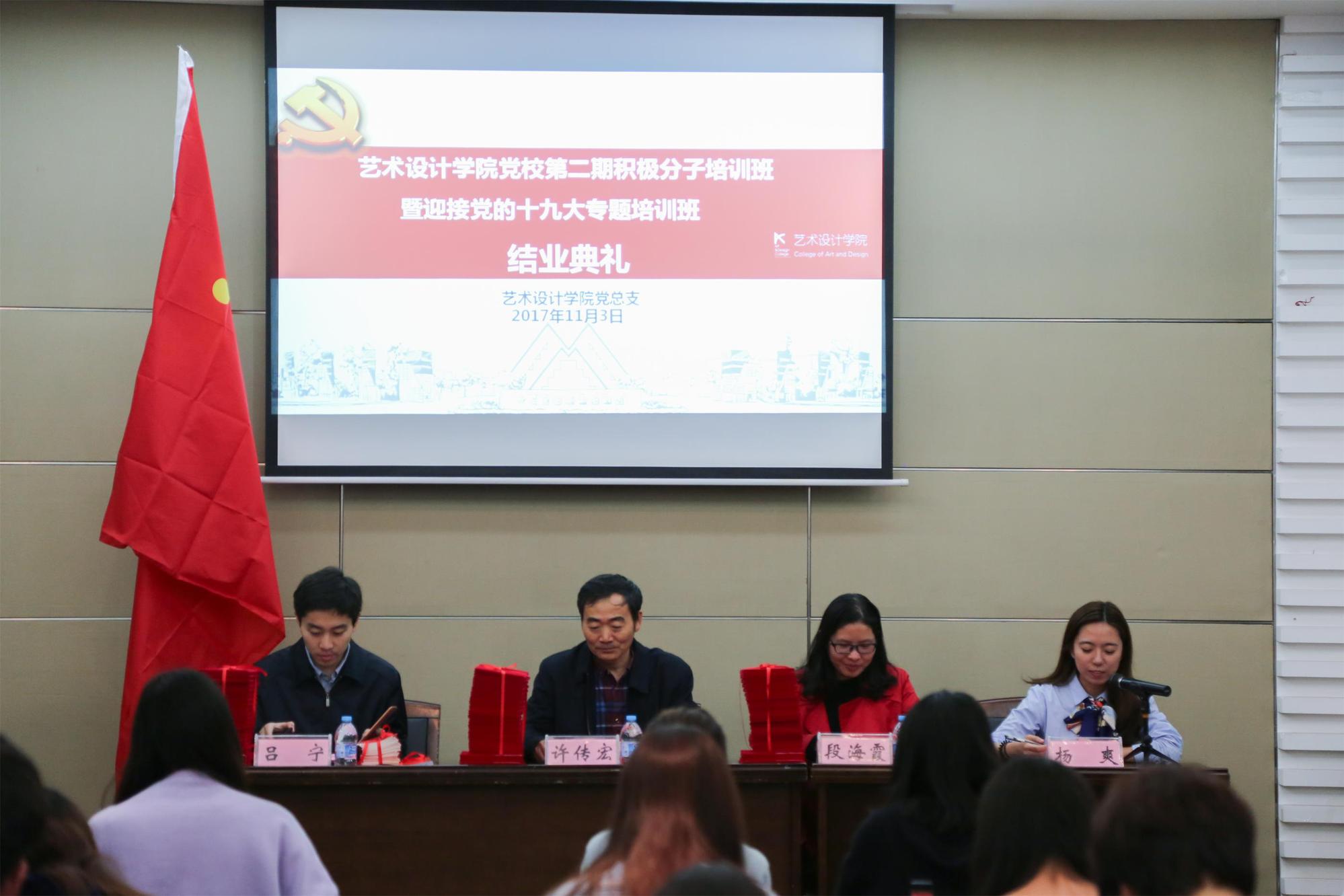 11月3日下午,艺术设计学院党总支在图文信息中心第四报告厅举行了党校第二期积极分子培训班暨迎接党的十九大专题培训班结业典礼。学院党总支书记许传宏、校党委组织部副部长兼党校副校长段海霞、党总支副书记吕宁、组织员杨爽及全体顺利结业学员出席会议。本次结业典礼由组织员杨爽主持。