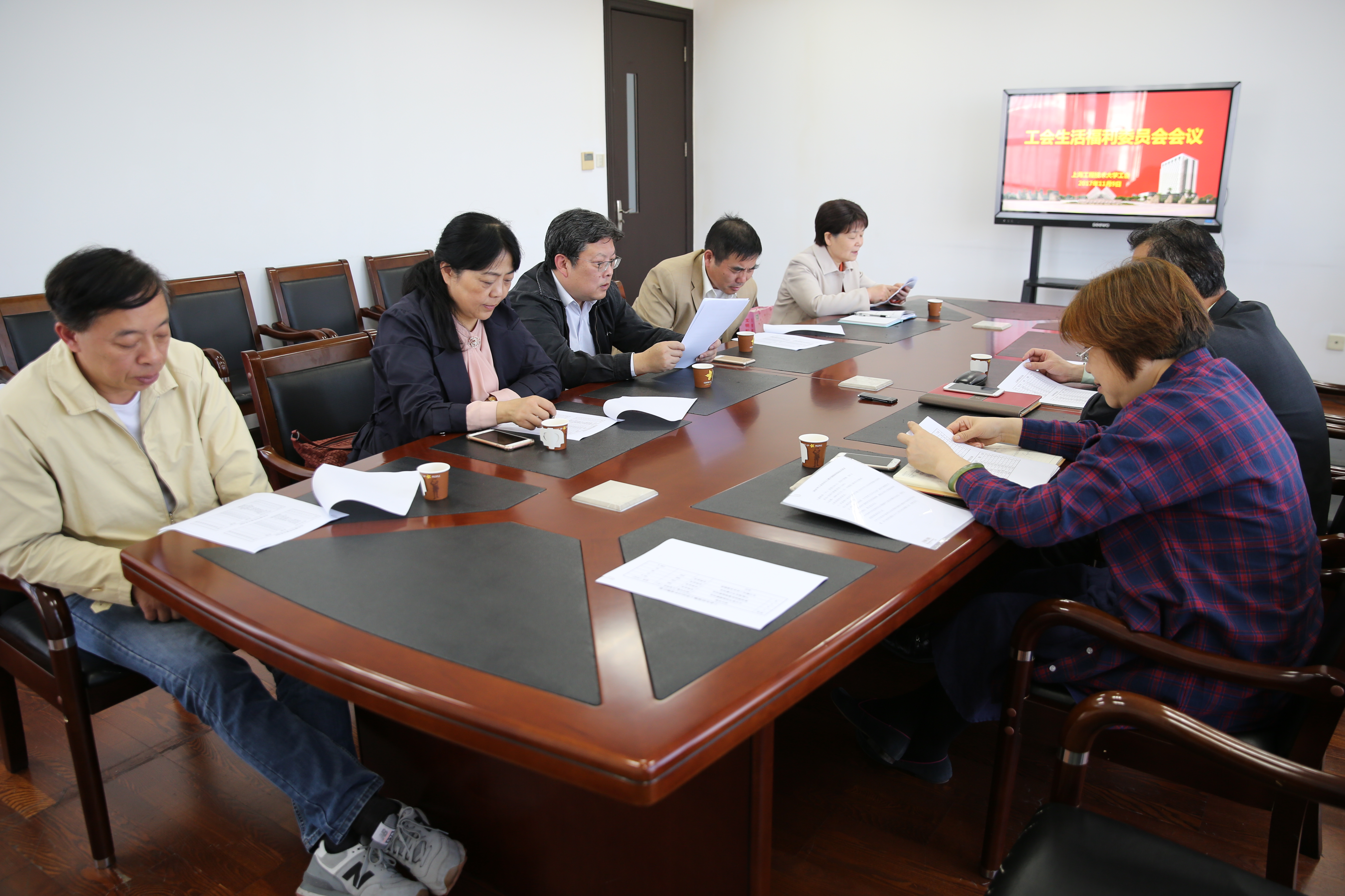 会上,与会委员围绕2018年工会福利项目逐一进行讨论,工会保障工作负责老师现场答疑解惑。委员们积极建言献策,一定程度确保了福利组合的有质量、大众化、高品位。会后,工会积极与资产处和招投标机构进行对接,确保2018年工会各项福利项目扎实落地。