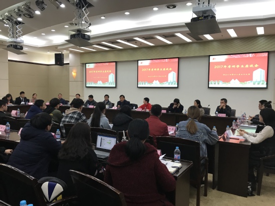 近年来,我校毕业生考研人数总体呈上升趋势,2018年,我校本科毕业生考研人数为814人。为进一步促进毕业生考研人数增长,鼓励学生报考母校,提升毕业生就业质量和满意度,学校于11月22日在图文信息中心第三报告厅举行2017年考研学生座谈会。校党委副书记、副校长史健勇出席座谈会,学生处、教务处、研究生处、图书馆、后勤实业发展中心、社会科学学院、数理与统计学院、外国语学院等职能部门及学院负责人,20位考研学生代表、14位研究生在读学生代表,以及全体就业辅导员参加了座谈会,会议由2017级管理学院社会保障专业研究生徐鹏主持。