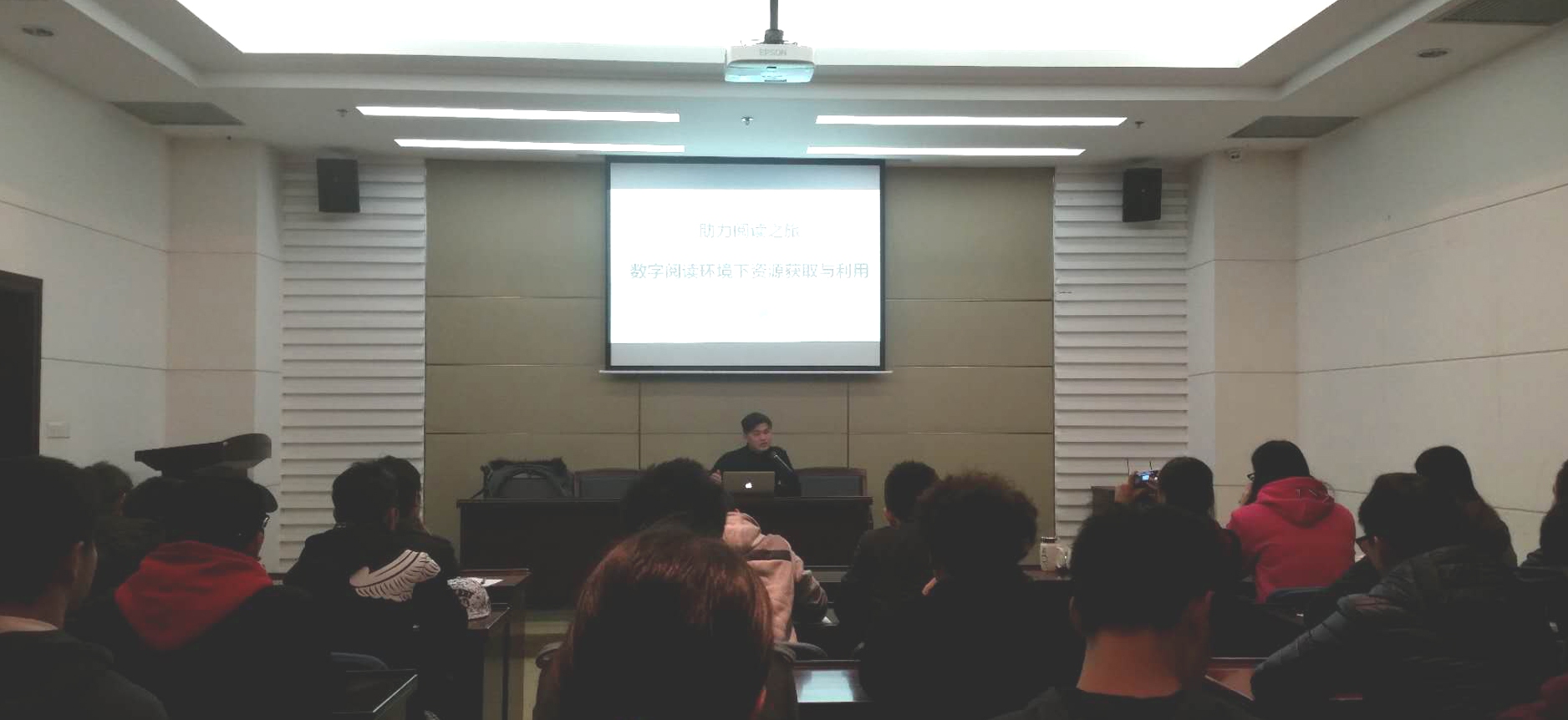 随后举行的是“助力阅读之旅——数字阅读环境下资源获取与利用”数据库讲座。超星专职培训师邹瀛详细介绍了超星的资源平台——读秀、百链云、超星发现、超星电子书、超星期刊、移动图书馆等。讲座期间不时进行提问、互动,气氛热烈活跃。讲座使师生读者对如何利用超星数据库进行科研检索与学术投稿有了更深刻的认识。