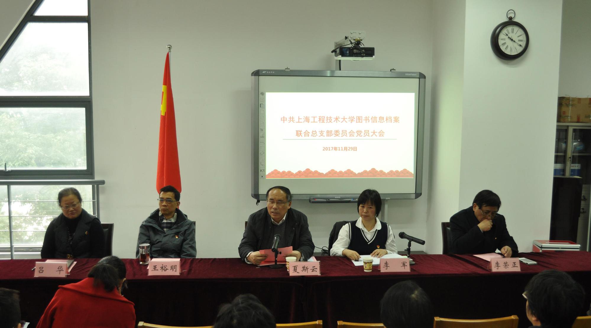11月29日上午,图书信息档案联合党总支校党代会代表选举和换届选举党员大会在图文信息中心204室召开。校党委副书记、纪委书记夏斯云出席大会,校组织部副部长段海霞、图书信息档案联合党总支委员及全体党员参加了会议。会议由图书信息档案联合党总支书记李军主持。