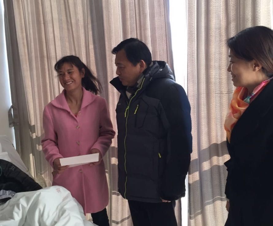 校党委副书记、副校长史健勇一行在住院部病房里面慰问了患病的学生及家长,把学校、学院为学生申请到的5000元补助金交到了学生母亲手中,叮嘱学生术后要多休息,安心养病,争取早日康复, 并安慰家长,一定要保重身体。学生母亲对学校在住宿安排、给予补助与医院沟通等方面的关心和帮助表示感谢。