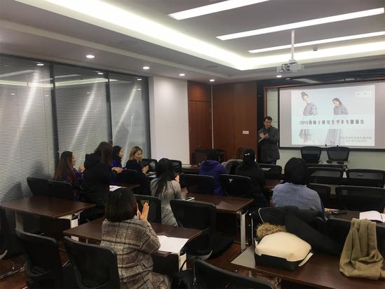 谢雨婷同学则针对时尚创意活动策划中的一个环节,做了题为《以上海时装周为例谈服装表演编排设计》的讲座,以上海时装周的演出为例,对服装表演编排设计的基本原理、原则及其应用进行解析,并分享了自己的多次实践经验和感悟。