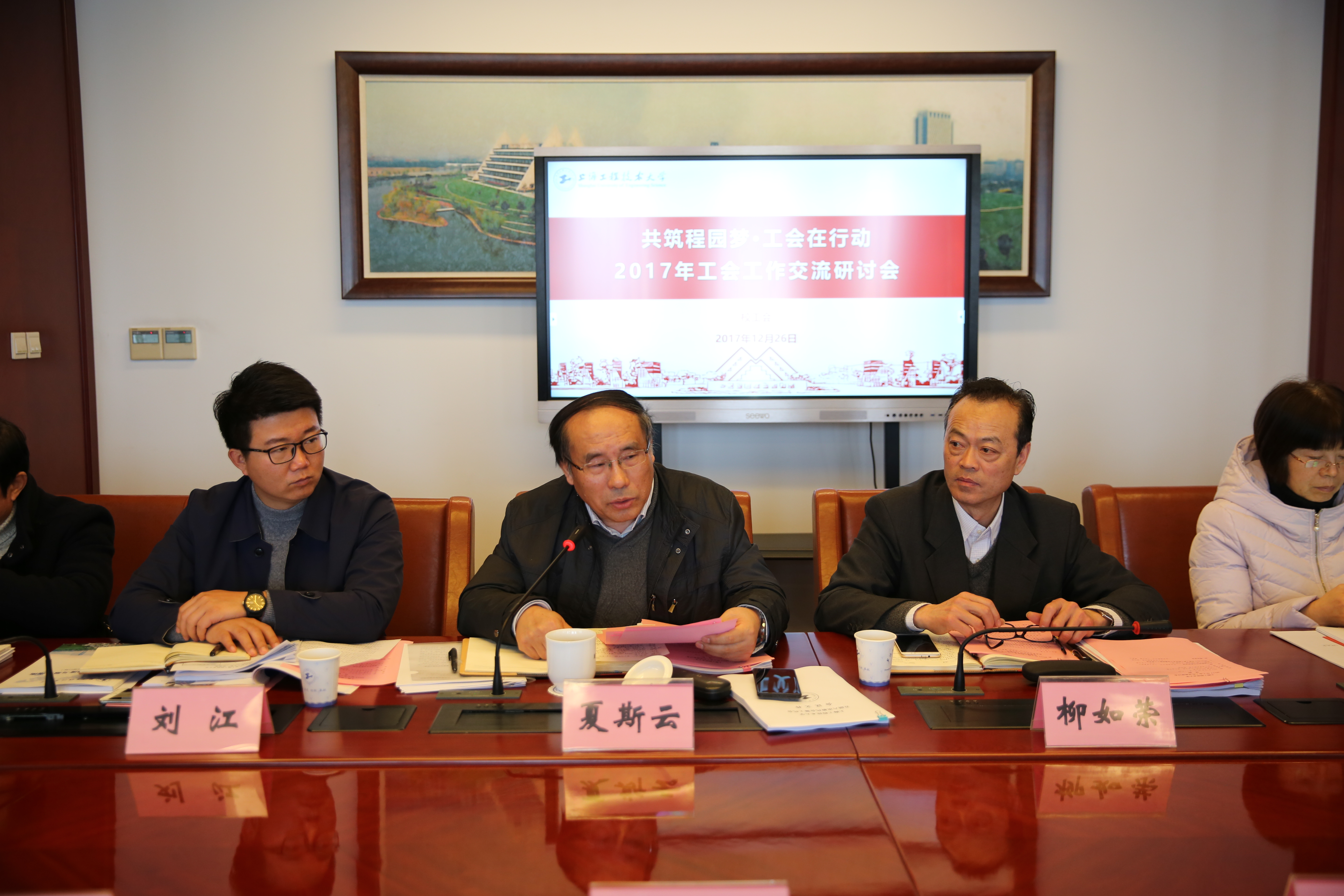 12月26日上午, 2017年工会工作交流总结会在行政楼406室召开。我校党委副书记、工会主席夏斯云、各部门工会主席等参加会议。会议由工会常务副主席柳如荣主持。