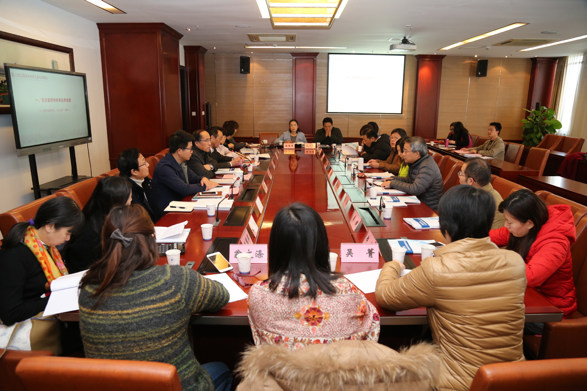校党委副书记、工会主席夏斯云首先为各学院颁发了2017年工会会员电影观摩券以及2018年工会会员生日慰问蛋糕券。随后各部门工会主席对本部门2017年工会工作进行了详细的介绍及总结,为工会工作提供了新思路。