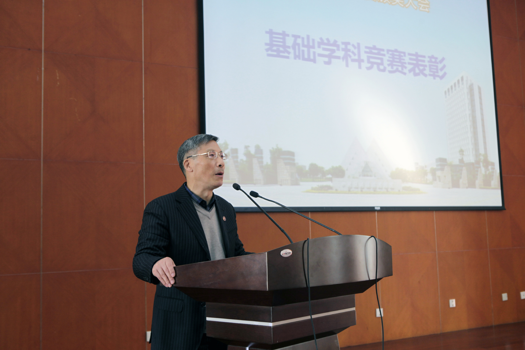 鲁嘉华副校长在致辞中对各位获奖同学表示祝贺,他指出了基础学科竞赛的重要性,肯定了学院对基础学科竞赛的付出。希望依托基础学科竞赛的平台,一方面能培养具有创新精神的人才,不断夯实学生们的基础学科知识,应对不断更新的知识环境;另一方面以学科竞赛为导向,理论联系实际,调动更多学生的学习热情,冲刺更高的奖项。特别提到日前由中国高等教育学会发布的《中国高校创新人才培养暨学科竞赛评估结果》,我校在TOP300的排名中取得124名的成绩,分析了奖项和积分情况,指出基础学科竞赛的努力方向。最后,鲁嘉华副校长再次强调数学、物理及英语各个基础学科的重要性,规划2018年学校基础学科竞赛的工作方向。