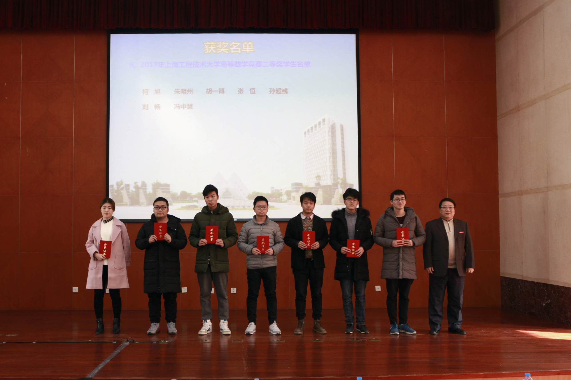 本次大会颁发的奖项有高等数学竞赛奖、大学物理实验竞赛奖和大学英语演讲比赛奖,获奖同学代表依次上台领奖。颁奖仪式后,获奖学生代表汽车工程学院赵效乾同学做了发言,和大家一起分享了他的学习体会和获奖感受。