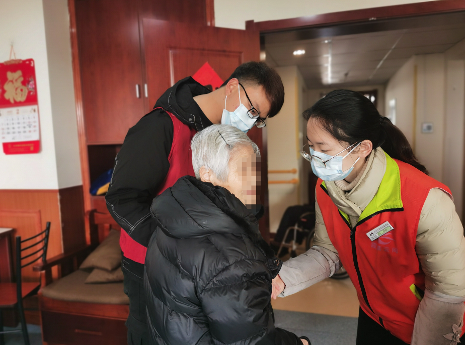 为使本次活动合理高效地开展,志愿者们兵分三路。第一组是安保组,由两名志愿者在敬老院门口协助保安人员进行出入人员管理,引导来访人员登记并测量体温,配合安保人员进行消防设施日常维护,并帮助家属将物品送到指定位置。第二组是话务组,由一名志愿者主要负责接听老人家属来访电话,配合家属进行电话预约,选择合适的时间进院探访,做好记录。第三组是陪护组,主要是陪护在七楼的十余位认知症老人,该组需要较多人力,由六名志愿者组成。