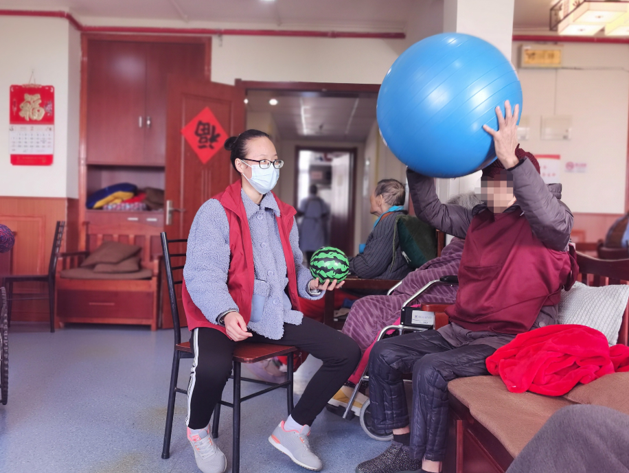 本次志愿活动最令人感动的场景在于志愿者们带领所有老人们一起玩球,尽管老人们由于行动不便都坐着,但这并没有影响他们的参与热情。志愿者不断将球踢给各个老人,让每位老人都能参与到玩球的过程中。正是这个小活动,打开了老人们的心房,缓解了志愿者们的紧张,同时也慢慢地找到了一些话题与老人进行交流,一时间,七楼大厅笑声不断,气氛变得越来越融洽。不知不觉,到了老人们检查身体的时间了,志愿者们不得不依依不舍地和老人们挥手告别,临别前,志愿者们衷心祝愿老人们能度过一个健康幸福的晚年,愿每一位老人都能被温柔以待。