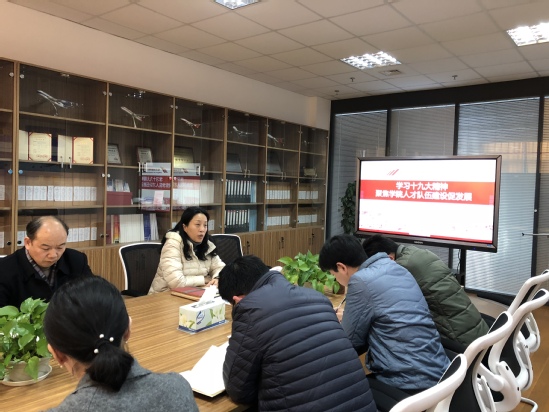 1月9日下午,航空运输学院、飞行学院党总支在航飞6412会议室召开“聚焦人才发展,贯彻落实党的十九大精神”专题学习讨论会,全体中心组成员参加学习并进行交流发言,会议由党总支书记虞蓉主持。