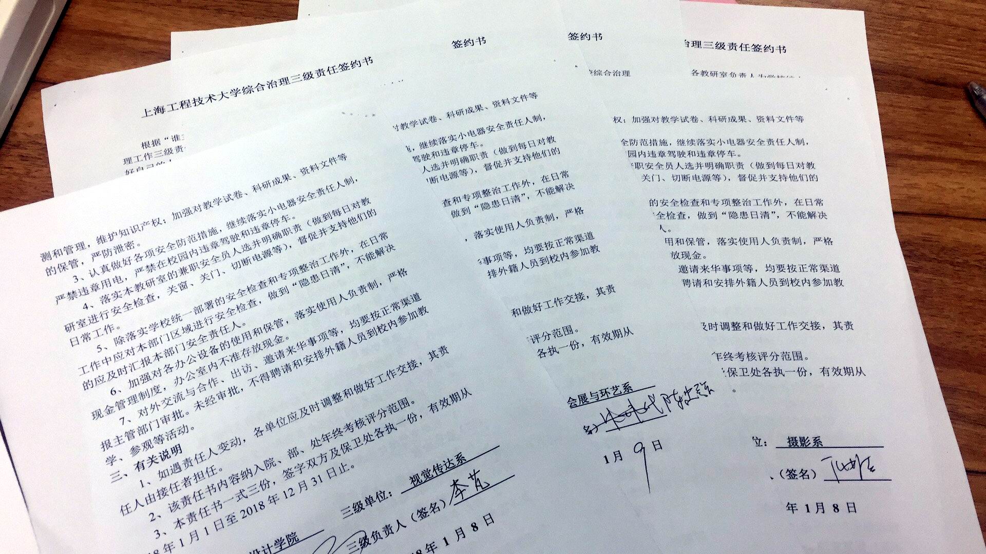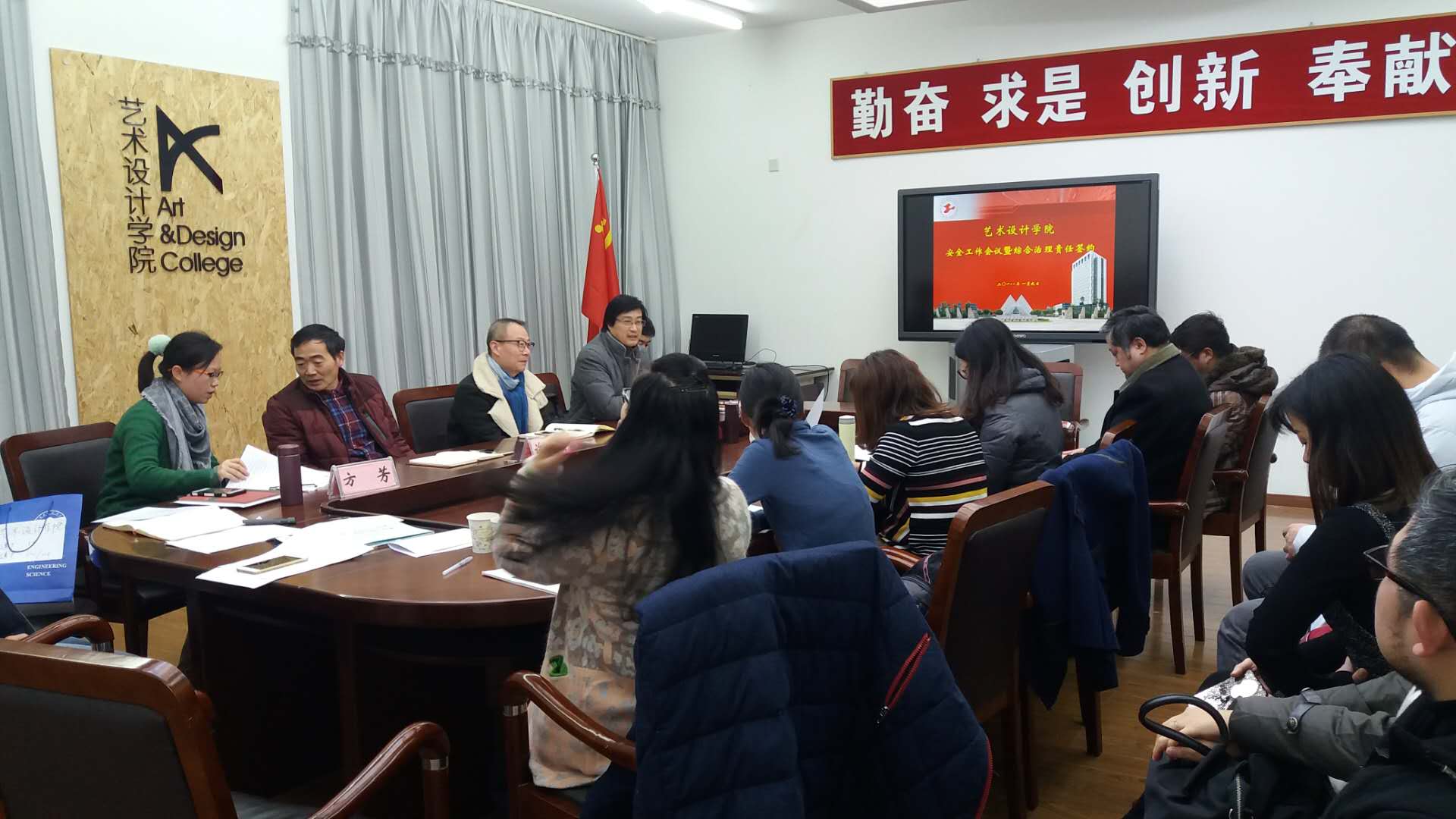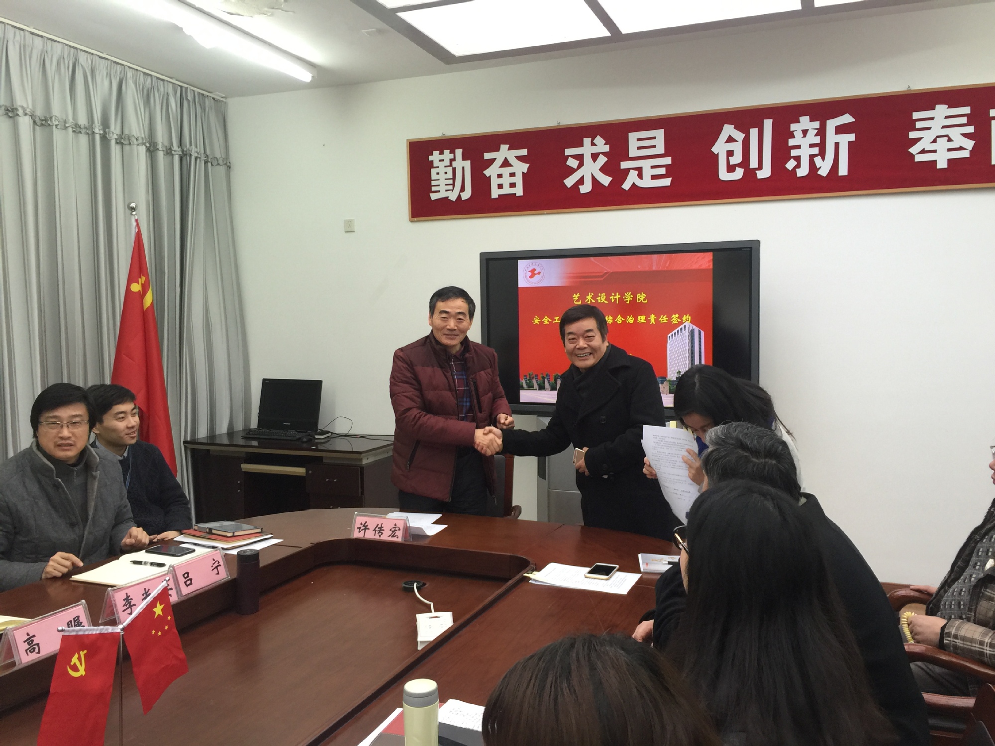 为了进一步加强艺术设计学院综合治理和安全工作,提高全体教职工的安全防范意识,艺术设计学院于1月9日下午在艺术楼开展了全体系室主任和骨干教职工的安全意识教育,并对学院的综合治理三级责任签约活动。学院李光安副院长主持本次会议,学院党总支书记许传宏与各位系室主任签订了三级责任签约书。