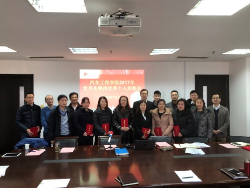 1月12日,汽车工程学院党委在行政楼1012召开了2017年党员先锋岗先进个人表彰会。汽车工程学院党委书记杨寅华、汽车工程学院党委副书记马建立、副院长陈浩、副院长罗素云、副院长钱宇彬、全体教工党员以及学生党员代表出席了本次大会。会议由汽车工程学院党委副书记马建立老师主持。