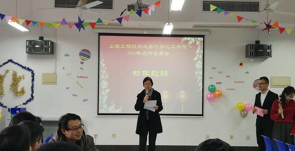喜乐会开始前,学院党总支刘宇虹书记首先登台向全体教职工作新年致辞,刘书记以精简热情的发言概括了化学化工学院在2017年度所取得的各项成绩,并为全体教职工和家人送出了美好的新年祝福。