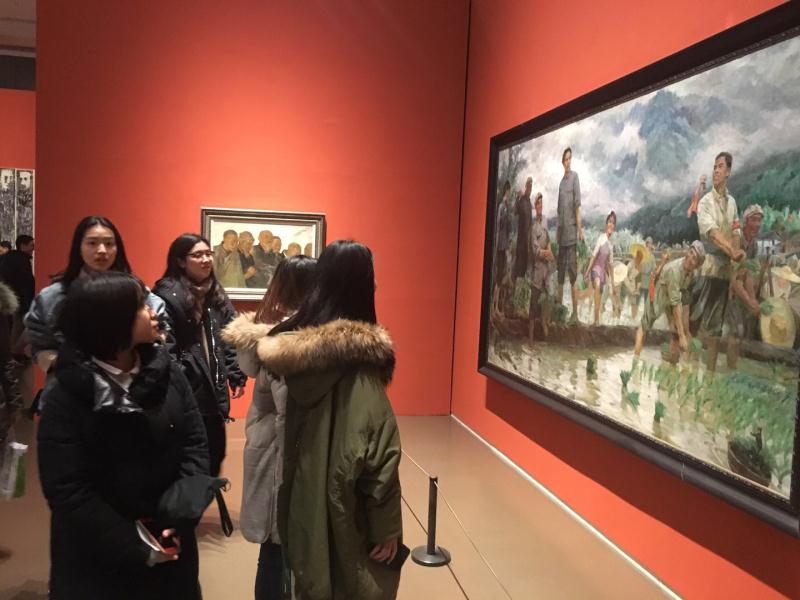 在看到陈艺飞与魏景山大师共同创作的《占领总统府》的画作时,师生们驻足许久,因为魏景山老师,作为中法学院艺术创作设计工作室,亦是上海壹画室的艺术大师,欣赏身边的艺术大家画作,时空间的对话,专业上的学习,见证着我党的发展成就。