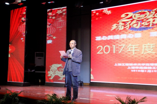 学院党委书记沈海庆发表新春致辞,代表领导班子成员向全体教职工拜年,向一年来辛勤工作在各个岗位的教职员工表示衷心的感谢和节日的问候,祝全院、校教职员工及家属新春快乐、阖家幸福。吴训成副院长宣读了《关于表彰2017年度先进集体和先进个人的行政表彰令》。大会共对2017年考核为优秀的机电工程系等5个先进集体,朱红新等36名考核为优秀的教职工进行了表彰。