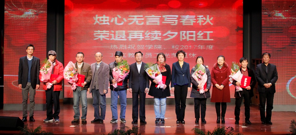 “烛心无言写春秋,荣退再续夕阳红”在隆重而喜庆的气氛中,学院领导为2017年光荣退休的31名教职工颁发纪念证书并合影留念,对全体离退休教职员工长期以来为学院事业所作出的努力和贡献,表达深深的谢意和崇高的敬意。