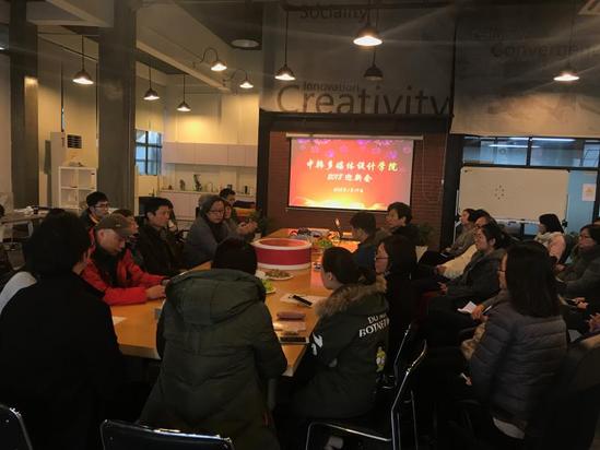 2018年1月19日,中韩多媒体设计学院在长宁校区召开了学院2018年迎新会。中韩双方全体教职员工参加了此次会议,并邀请了学院退休老教师莅临指导,大家济济一堂,对2017年一年的工作进行了回顾与总结,并对2018年的工作进行了规划与展望。