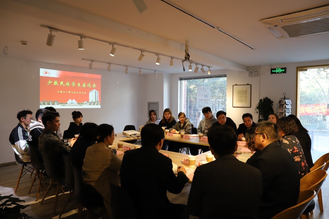 为进一步提升少数民族学生教育、管理和服务工作,努力培养政治立场坚定、专业素质过硬的建设者和接班人,促进民族团结融合,3月23日下午,我校在学生公寓四期校园书店钟书阁召开了新学期少数民族学生座谈会。校党委副书记、副校长朱晓青出席会议,学生工作部(处)、研究生工作部、组织部副部长兼统战部、教务处、管理学院相关负责人、少数民族专职辅导员以及少数民族学生代表参加了本次座谈会。