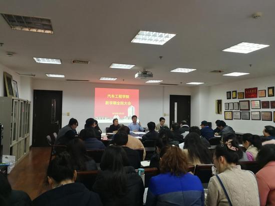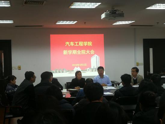3月2日下午,汽车工程学院在行政楼1012室召开新学期全院大会。汽车工程学院全体党政领导及教职工参加了本次大会,大会由学院党委书记杨寅华主持。
