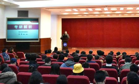 会上,副院长李军首先进行了考研解析,他从考研的意义、准备过程及注意事项等几个方面做了细致的阐述。他提到考研是自我提升、社会需求和就业趋势的必然要求,鼓励同学们报考985和211高校,更鼓励大家考取本校的研究生,他分析了选择报考本校研究生的优势,给出了在选择院校和研究生导师方面的建设性意见。李军教授指出,我院针对考研同学开办的考研班充分借鉴了我校相关政策,积极为考研同学提供帮助和支持,是学院一大特色班级,他希望考研的同学能充分利用好考研班资源,助力考研,实现自己的梦想。
