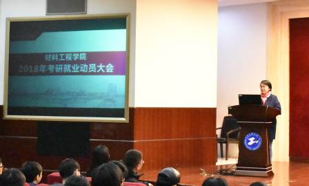 3月9日下午,材料工程学院在图文信息中心第二报告厅召开了2018年考研就业动员大会,本次大会旨在提升2015级学生考研和就业的积极性。学院党委副书记梅元媛、副院长李军和就业辅导员刘艳红参加了本次考研就业动员大会。会议由2015级辅导员沈园花主持。