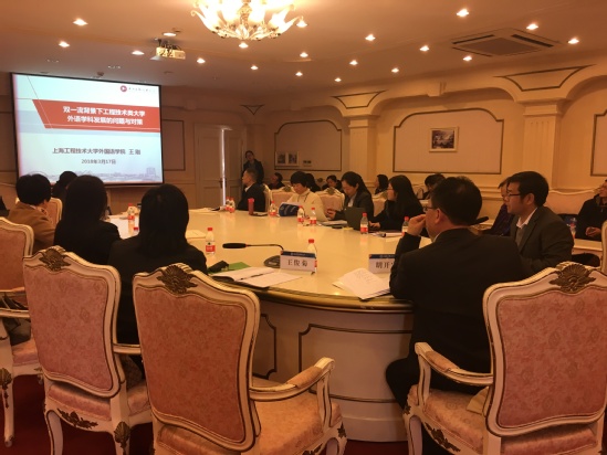 参加此次论坛的有来自北京大学、清华大学、复旦大学、上海交通大学、浙江大学、南京大学、北京外国语大学、上海外国语大学等高校的校长和外国语学院院长近200名。外国学院院长王刚教授是少数应邀做主旨发言的代表之一。在名为“双一流背景下工程技术类大学外语学科发展的问题与对策”发言中,王刚教授指出:工程技术类大学外语学科与全国一流外语学科存在着很大差距,在学科定位和特色发展等方面都存在一定问题。在“一带一路”国家战略和“双一流”建设的背景下,如何结合各自学校及全国工程技术类大学外语学科的共同特点,向全国一流高校和一流学科学习,共同探讨、协调发展,从而在教学、科研、学生培养等方面都做出特色,才是该学科的生存和发展之本。而作为中国高校外语学科发展联盟的理事单位,大家要充分发挥学术共同体的作用,取长补短、协同发展。王刚教授的发言紧扣时代主题,观点清晰、指向明确,引起了场内的热烈反响。上海外国语大学党委书记姜锋教授在致论坛闭幕词时,多次引用了王刚教授的观点。