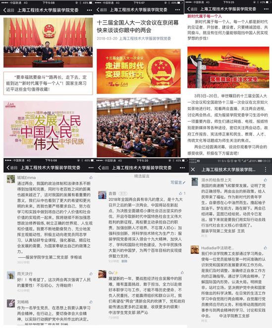 学习“两会”精神重在实践,服装学院师生党员纷纷表示,要认真学习“两会”精神,并将这种精神融入到自己日常的学习、工作中,以实际行动投入到工作和学习中去,为把我国建设成为富强民主文明和谐美丽的社会主义现代化强国、实现中华民族伟大复兴的中国梦作出新的贡献。