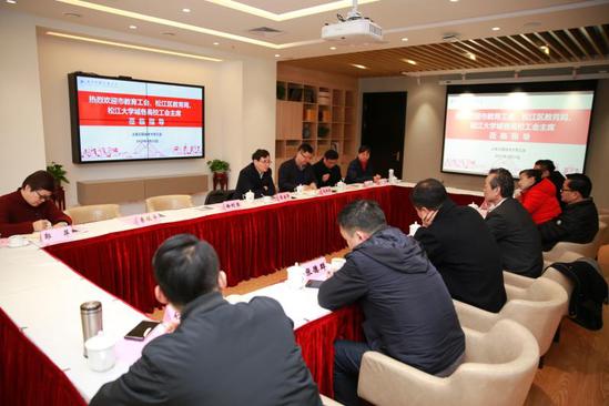 3月21日上午,松江片区高校工会主席联席会议在我校举行。上海市教育工会副主席吉启华、松江区教育局招办主任季银萍及松江片区各高校工会主席出席本次会议。校党委副书记史健勇会见了吉启华一行。