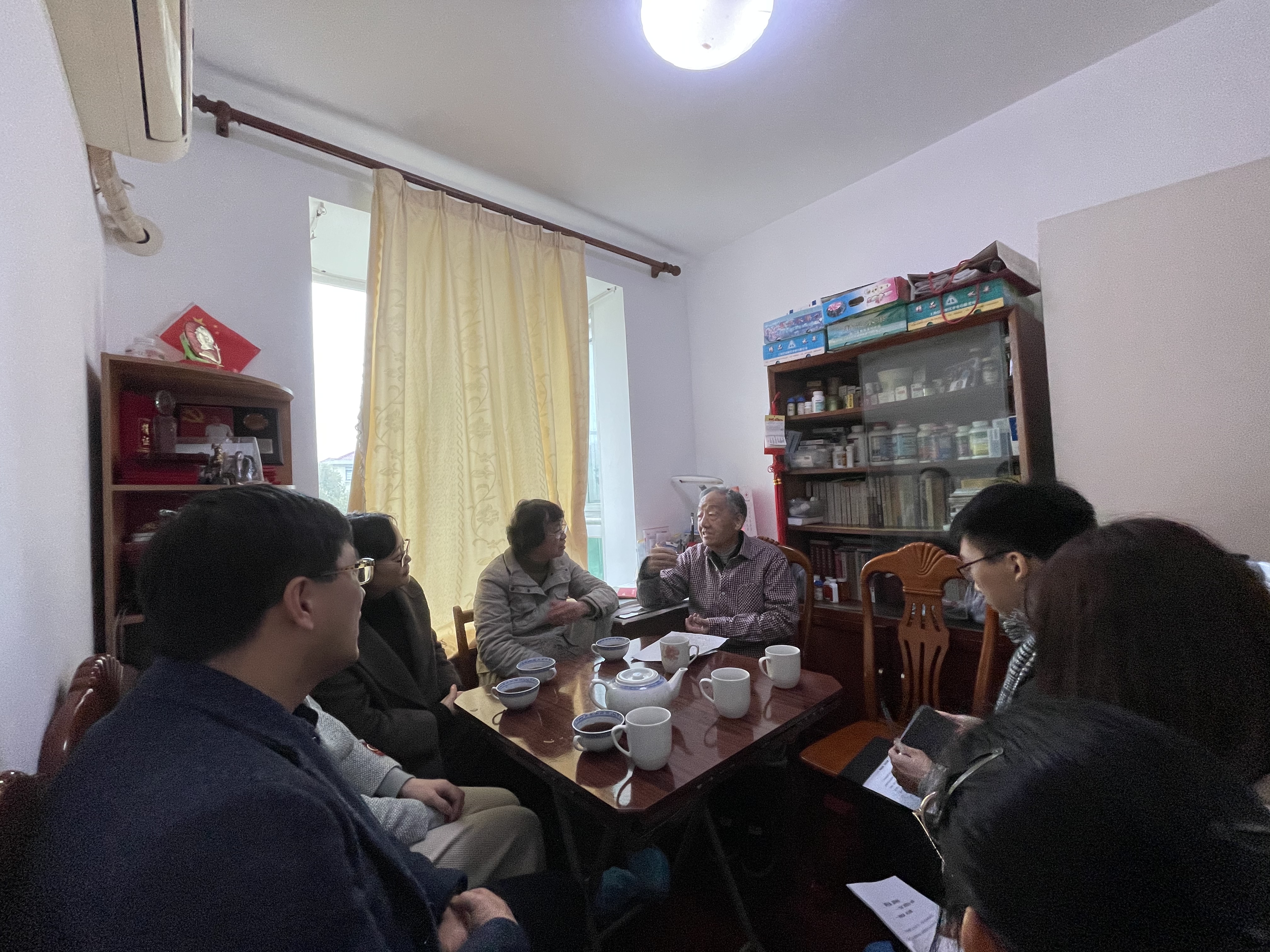 为深入贯彻落实习近平总书记在党史学习教育动员大会上的重要讲话精神,全面贯彻学校党委党史学习教育各项部署,管理学院充分挖掘丰富的退休老党员、老教授资源,开展老党员的入党初心与故事系列报告会,将管理学院的党史学习教育推向深入。近日,管理学院党委书记周洁老师带队走访了学院退休教师贺元一老师,管理学院党委副书记程玉莲老师、张强老师,管理学院学生第三党支部书记、辅导员左晨琳老师,管理学院团委书记、辅导员白茹老师及学生党员代表随行。