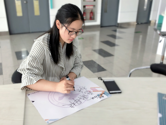 会谈后,穆晓绮为母校写下了自己的祝福语,以及对学弟学妹鼓励——“感谢母校,为我指明方向,给我勇气和自信”。小组成员对穆晓绮同学的祝福表示由衷的感谢,也祝福她在今后的学习工作中一帆风顺。