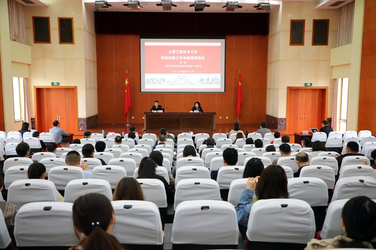 为扎实推进党史学习教育,坚持党对统一战线工作的领导,巩固马克思主义在意识形态领域的指导地位,4月20日上午,学校在行政楼B301会议室举行民族和宗教工作专题学习会。会上邀请市民族和宗教事务局民族一处姜斌处长作专题辅导报告,校党委副书记、副校长朱晓青主持学习会,各二级党组织书记、副书记、宣传委员、统战委员,各单位宣传员、统战联络员以及少数民族学生辅导员参加学习。