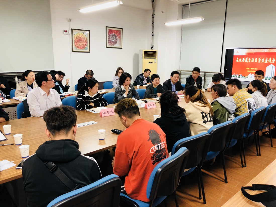 为更好地倾听我校西藏自治区学生的心声,全面了解学生的学习、生活情况,不断强化学校管理育人、服务育人的针对性与实效性,进一步增强学生的归属感、获得感、成就感和幸福感,4月9日下午,我校在师生活动中心组织召开了西藏自治区学生座谈会。校党委副书记、副校长朱晓青,后勤实业发展中心主任鲁柏青、社会科学学院院长刘志欣、教务处副处长李霞、学生工作部(处)有关老师及西藏自治区学生出席本次座谈会。会议由学生工作部(处)朱蓓部(处)长主持。