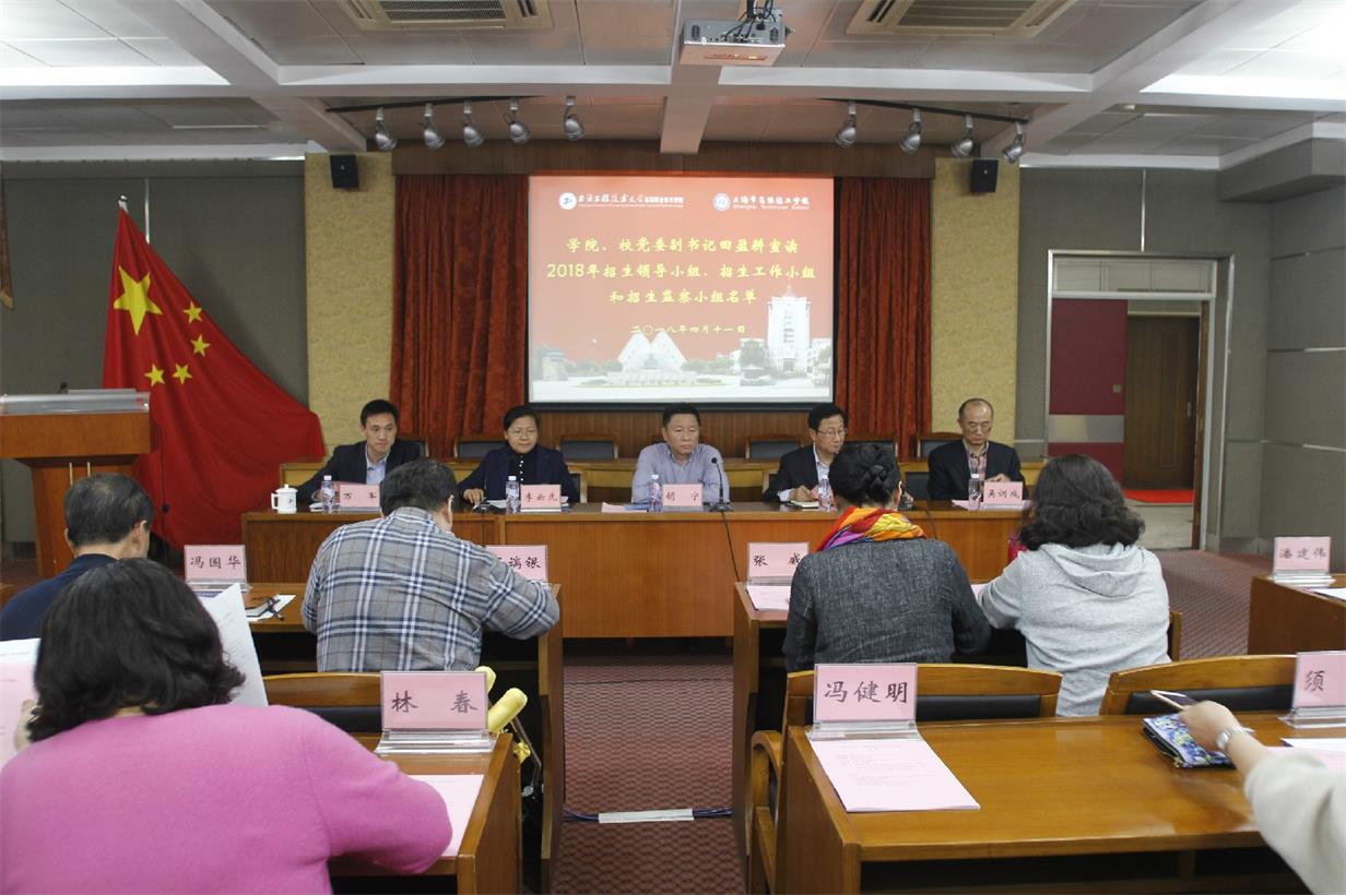 4月11日下午,高职学院、高级技校2018年招生工作专题会议在综合楼九楼报告厅召开。学院、校党委副书记、院、校长胡宁,党委副书记田盈耕、李云先,副院、校长吴训成、万军出席,学院、校招生工作小组和招生监察小组成员参加,会议由李云先副书记主持。