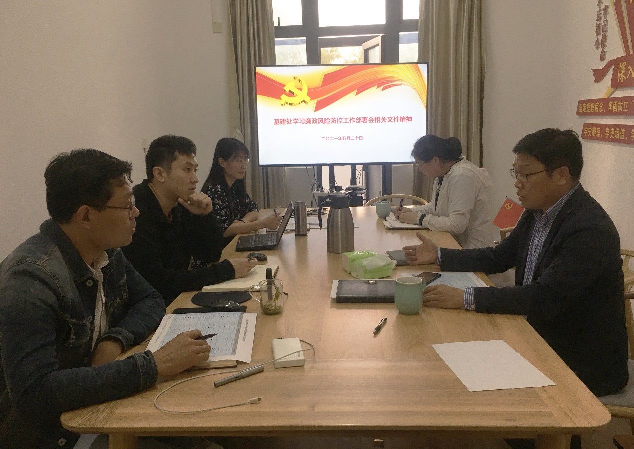 5月20日下午,基建处在后勤综合楼211会议室召开会议,学习传达学校“廉政风险防控工作部署会”会议精神,会议由基建处长刘国斌主持,基建处全体同志参加会议。
