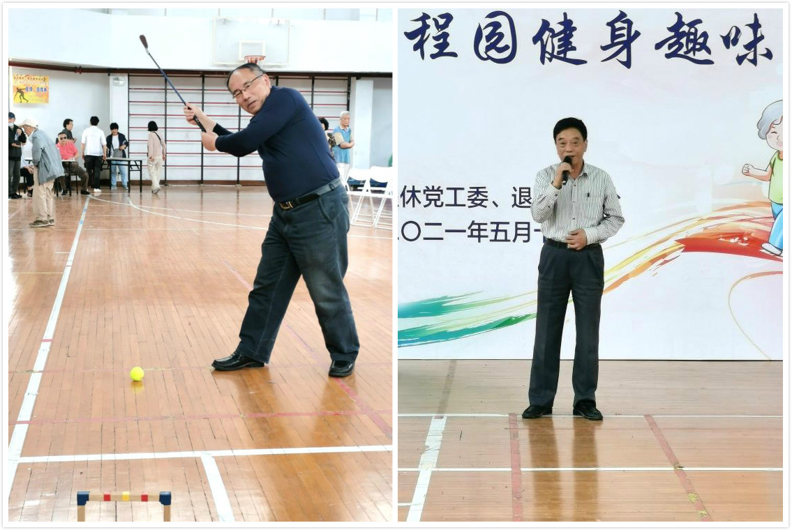 校老教协会长夏斯云为第十一届退休教职工程园健身趣味活动打出门球第一杆。活动中,校老教协副会长陈力华深情演唱了《敢问路在何方》和《我变了 我没变》;退休教师陈莹认真展示了陈氏太极拳并作了推广;退休教工合唱团满怀激情地演唱了《唱支山歌给党听》;程韵舞蹈队精心表演了舞蹈《茉莉花》,精彩的表演赢得了全场热烈的掌声。